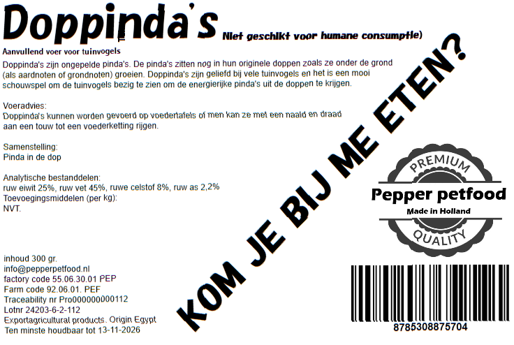 Doppinda's zijn ongepelde pinda's. De pinda's zitten nog in hun originele doppen zoals ze onder de grond