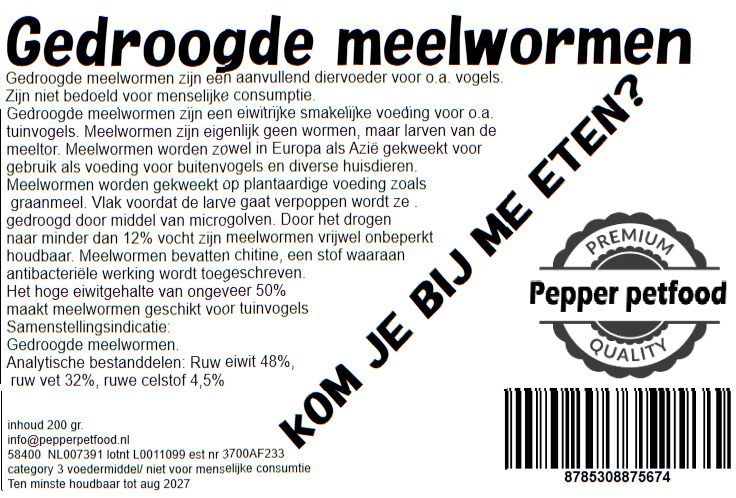 Gedroogde meelwormen zijn een aanvullend diervoeder voor o.a. vogels.
